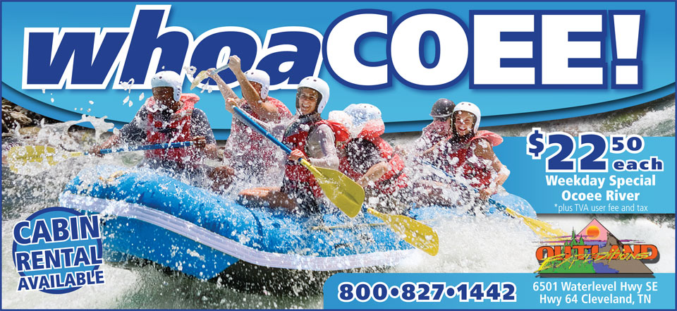 Outland Expeditions offers rafting excursions down the Ocoee River in Cleveland, TN. Having been on one of their expeditions before, I was excitedfor the opportunity to design an ad for them. With a little bit of word play and a great picture, I built this ad to convey the sheer thrill of the experience of white water rafting.